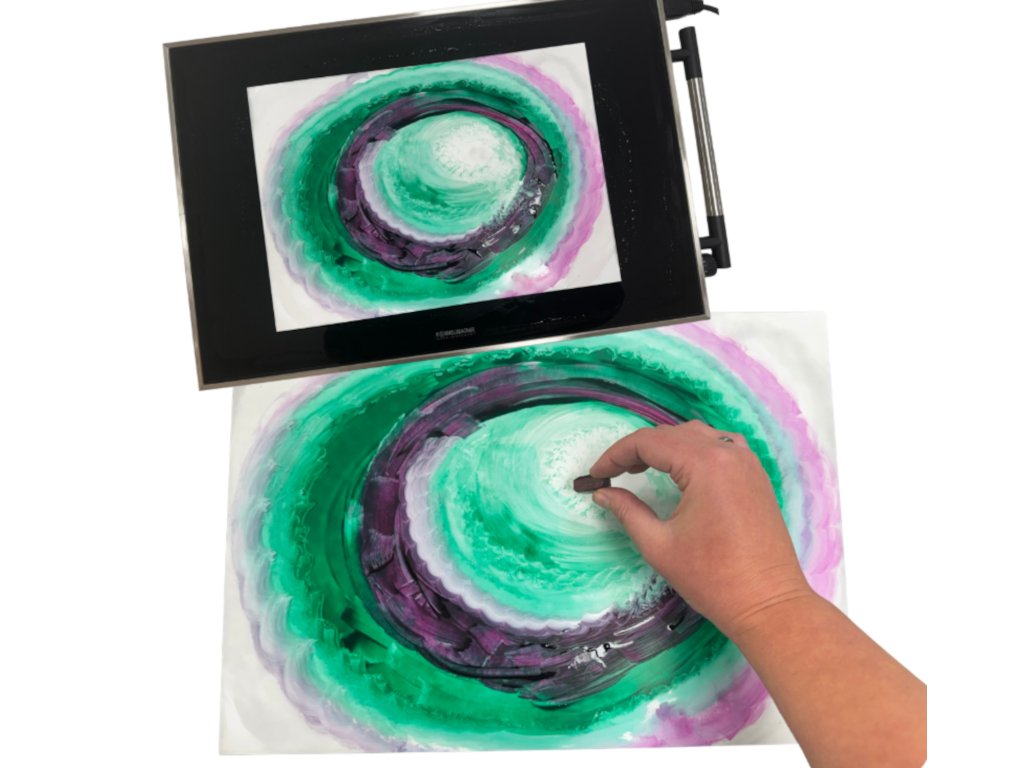 Deska nabízí univerzální použití - lze ji použít buď k přímému malování na papír např. houbičkou, štětcem apod, nebo může sloužit jako horká paleta pro enkaustiku (ideální pro míchání vosků a rychlé zahřívání nádobek s barevnými vosky).