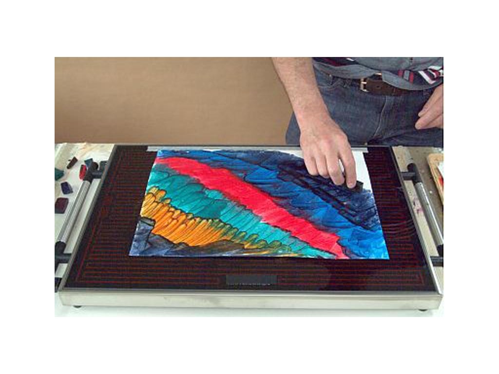Povrch enkaustické pracovní desky je vyroben z kvalitního skla, díky termostatu povrch udrží po celou dobu malování stejnou teplotu.
